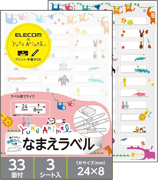 Amazon エレコム 名前シール 動物イラスト 保護シール付 99枚 33面 3