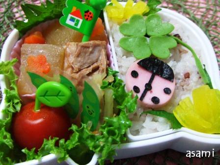 てんとう虫とクローバーのお弁当 キャラ弁 Asamiのお弁当 簡単かわいいキャラ弁の作り方